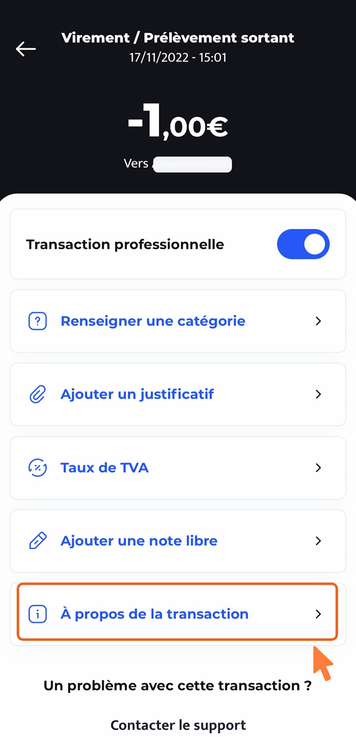 Rendez-vous sur le lien "À propos de la transaction" ;